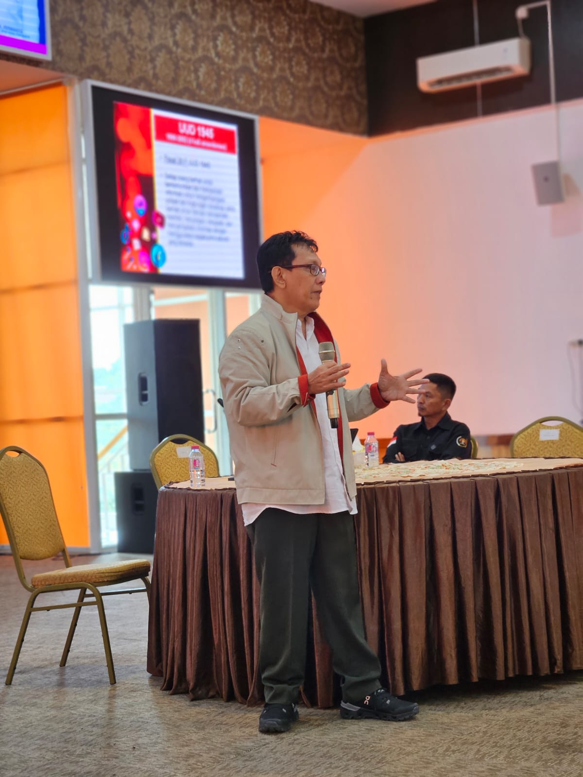 Rudy membawakan materi Strategis Kehumasan dan Media Sosial Pemerintahan. Presentasi kedua pemateri sangat menarik dan membuat peserta antusias.