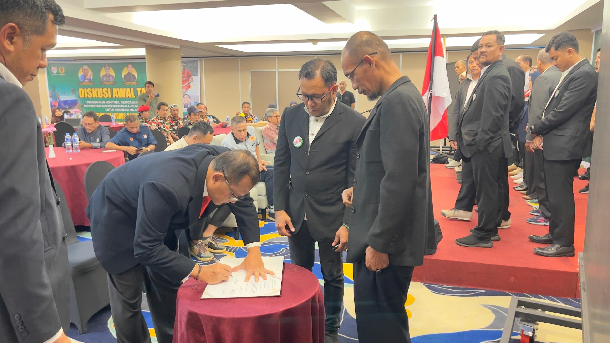 Sementara Rektor Unhas yang diwakili Sekretaris Unhas Prof. Sumbangan Baja menyampaikan siap bersinergi untuk program pembinaan atlet.