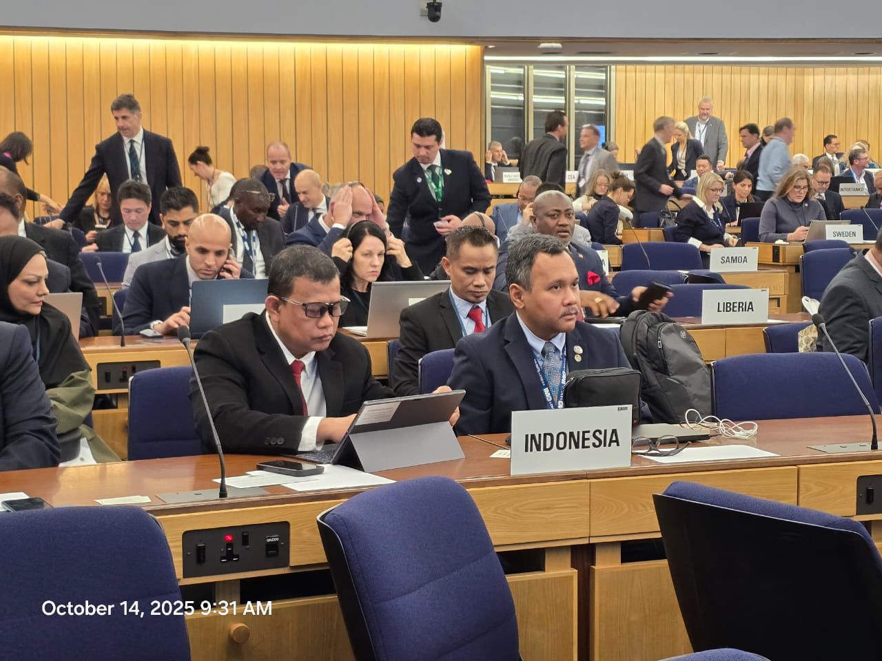 LONDON, MEGATRENDNEWS – Direktur Perkapalan dan Kepelautan, Direktorat Jenderal Perhubungan Laut Kementerian Perhubungan, Ir. Samsuddin, M.T., M.Mar.E, mewakili Indonesia dalam sidang International Maritime Organization (IMO) Maritime Protection Environment Committee (MEPC) Extraordinary Session ke-2 yang digelar pada 14–17 Oktober 2025 di London, Inggris.
