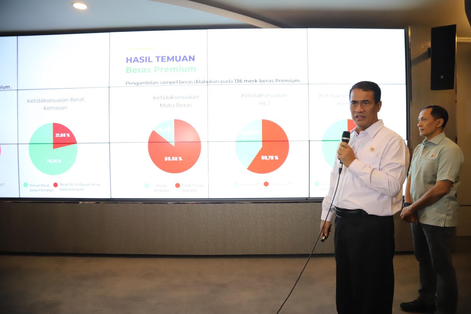 Hasil investigasi Kementan bersama tim pengawasan pangan di sejumlah wilayah menemukan beras bermerek dijual dengan harga premium, namun isinya ternyata campuran dengan beras medium atau tidak sesuai standar mutu beras premium. Kasus ini menjadi sorotan publik karena sangat merugikan masyarakat dan petani.