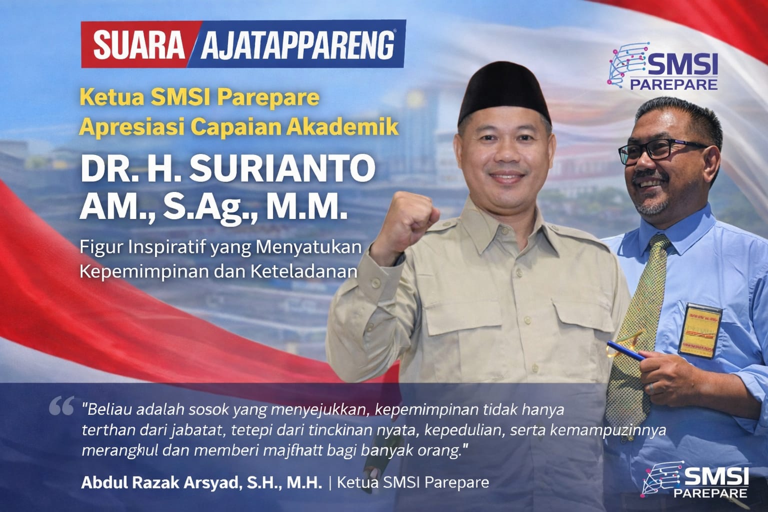 Ketua SMSI Parepare Apresiasi Capaian Akademik DR. H. Surianto, Figur Inspiratif yang Menyatukan Kepemimpinan dan Keteladanan