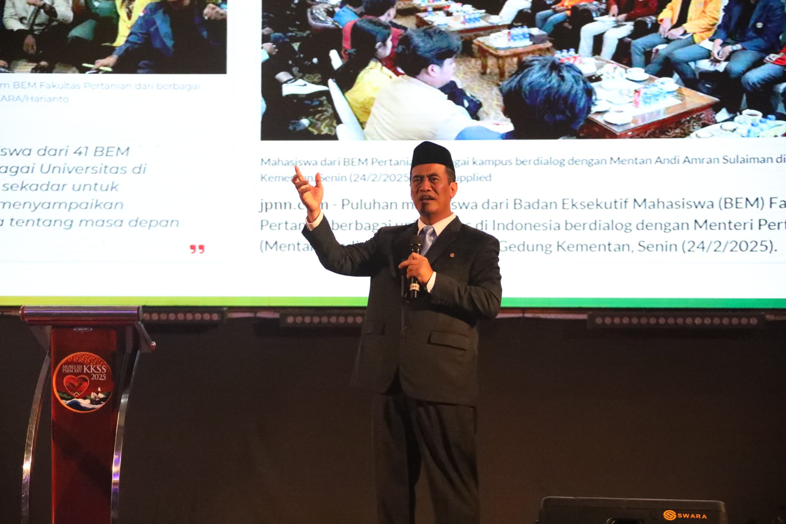 Mentan berjanji seluruh jajaran di Kementerian Pertanian tatap melakukan pendampingan terhadap para petani di seluruh Indonesia untuk mencapai visi besar Presiden Prabowo Subianto, yaitu capaian swasembada dalam waktu cepat.