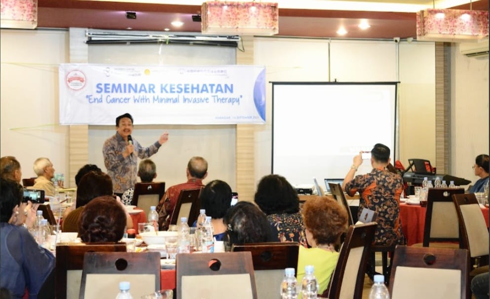 Seminar Kesehatan yang mengusung tema “End Cancer With Minimal Invasive Therapy (Akhiri Kanker dengan Terapi Minimal Invasif)” ini dihadiri sekitar 100 undangan yang berasal dari kalangan anggota P2TM Nusantara dan masyarakat umum yang begitu antusias ingin mengetahui metode penanganan penyakit kanker menggunakan teknologi baru.