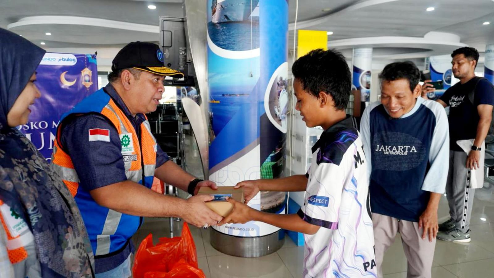 MEGATRENDNEWS.ID, MAKASSAR — PT Pelabuhan Indonesia (Persero) Regional 4 Makassar kembali menggelar kegiatan sosial dengan membagikan nasi kotak kepada pengunjung dan pemudik di Terminal Penumpang Pelabuhan Makassar, Senin (7/4/2025).