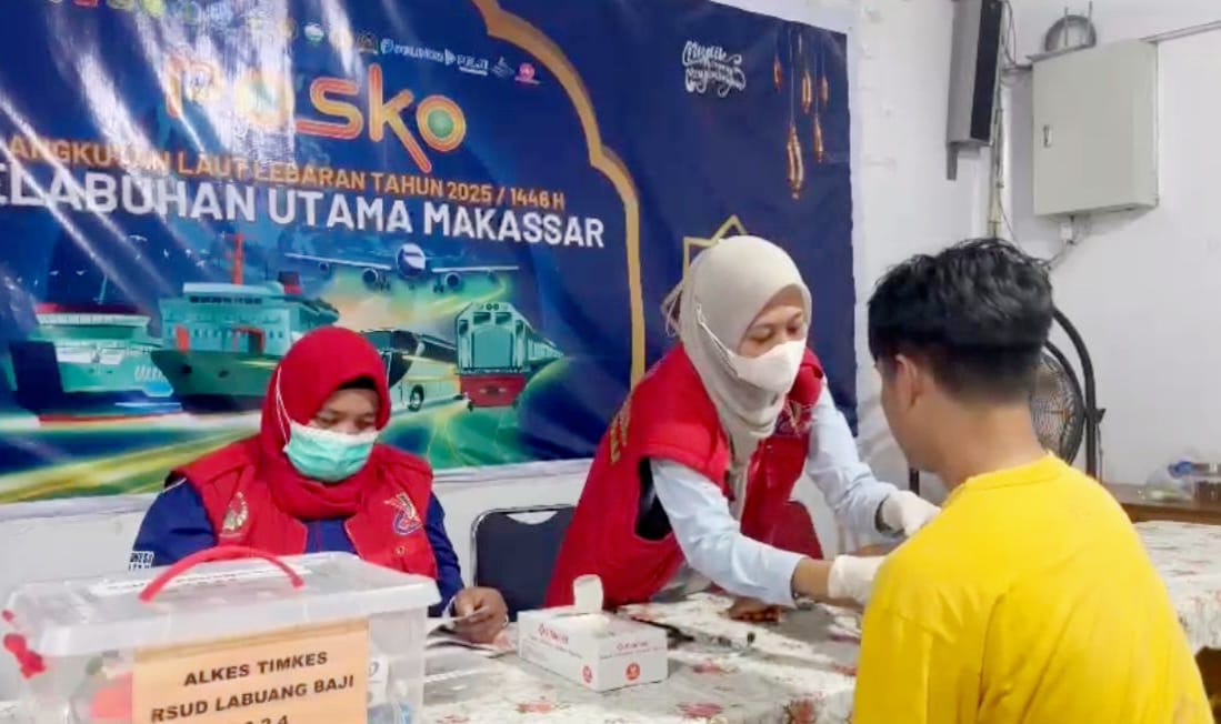 MEGATRENDNEWS.ID, MAKASSAR — Menyambut arus mudik dan balik Lebaran 2025, Pelindo Regional 4 Makassar bekerja sama dengan Kantor Kesehatan Pelabuhan Makassar mengadakan pemeriksaan kesehatan gratis serta pengobatan untuk masyarakat pengunjung Terminal Penumpang Anging Mamiri, Pelabuhan Makassar pada, Selasa (7/4/2025). Kegiatan ini bertujuan untuk memastikan kesehatan para penumpang, terutama menjelang dan setelah bulan Ramadan.