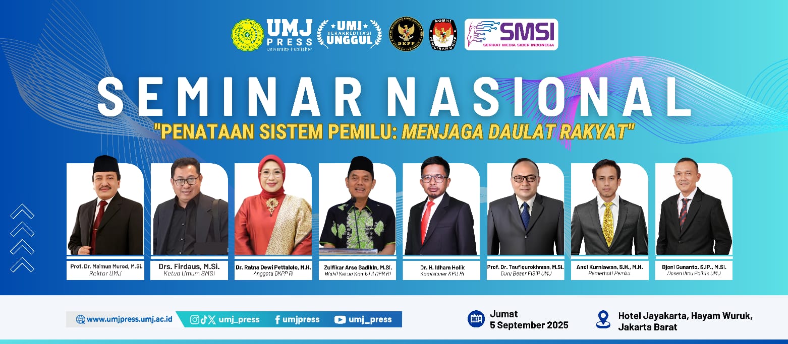 Berangkat dari realita tersebut, Universitas Muhammadiyah Jakarta (UMJ) pada Jumat, 5 September 2025 mendatang akan menggelar Seminar Nasional bertajuk “Penataan Sistem Pemilu Menjaga Daulat Rakyat” di Hotel Jayakarta Hayam Wuruk, Jakarta.